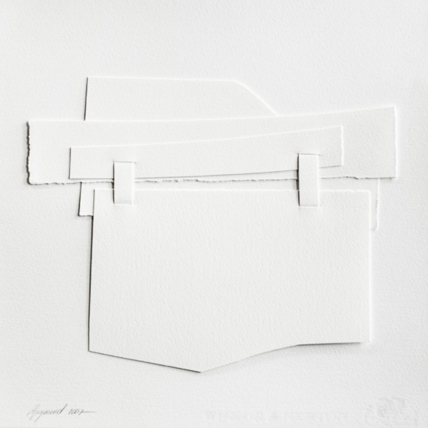 Les sculptures et les découpages de papier de Marc Raymond, constituent un bel exemple d'oeuvres caractérisées par une économie de moyens efficace. Les matériaux utilisés sont des plus simples (contreplaqué peint d'une seule couleur, papiers), et le résultat de leur assemblage, des plus désinvoltes. L'artiste réussit à faire voir au visiteur toutes les splendeurs de la forme dans son expression la plus sobre, lui permettant aussi de poser un regard neuf sur l'espace qui l'entoure.