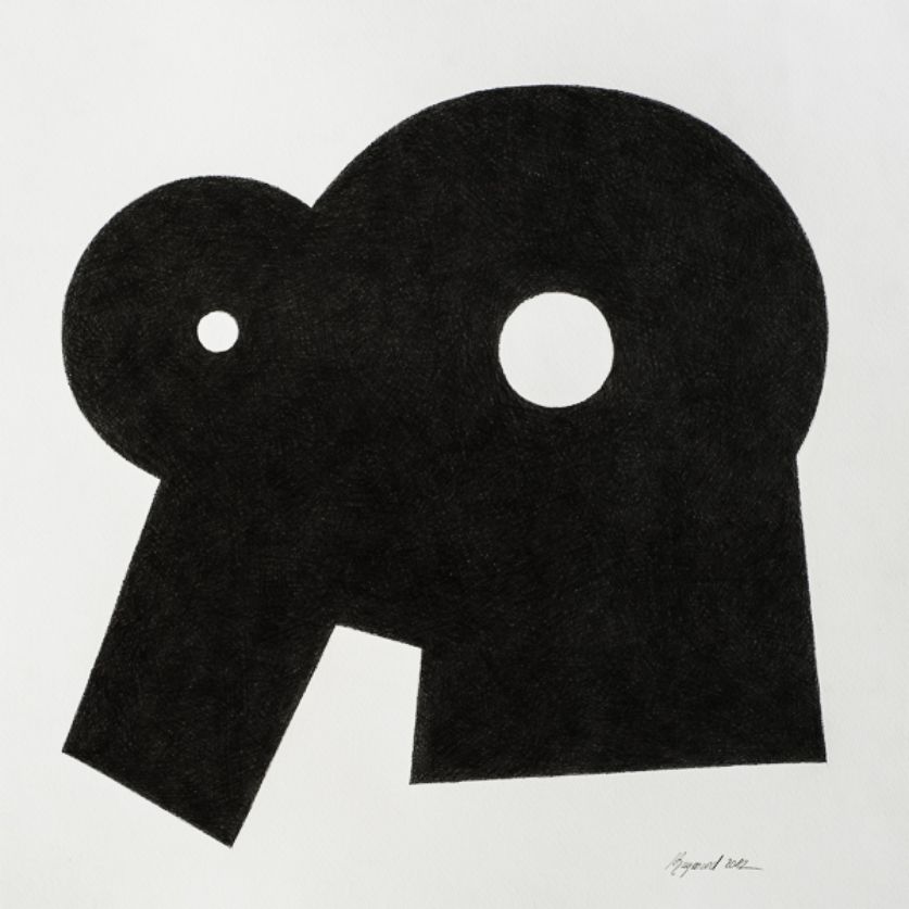 Quant aux travaux sur papier de Marc Raymond, leur langage visuel s’inscrit dans la lignée de l’abstraction géométrique. Mais ils n’en ont jamais la froideur presque impersonnelle. Les lignes et aplats qui ne sont pas ici réalisés avec une hantise de l’imperfection ne cherchent pas à retrancher ou évacuer le processus manuel de leur réalisation.
